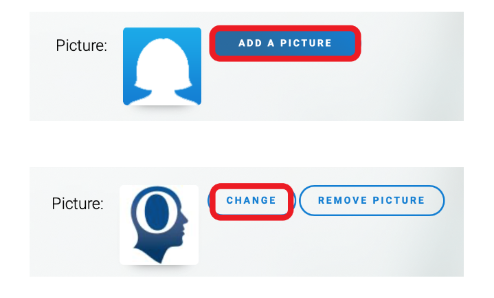 2. Scroll down to the picture area and click on Add a picture or Change to select your (new) profile picture
