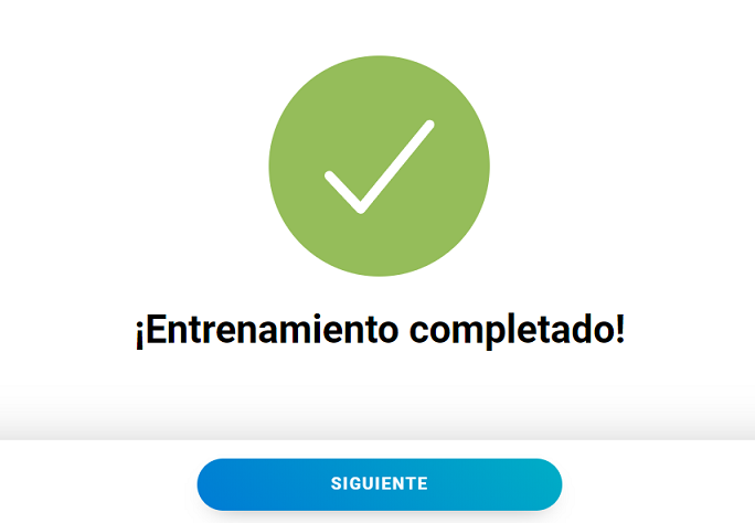 Del mismo modo, el participante verá una notificación de que la sesión de entrenamiento ha terminado.