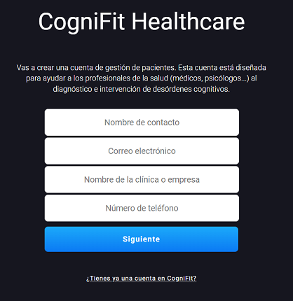 Puedes crear una cuenta profesional en la Plataforma para médicos y psicólogos, accediendo a la plataforma directamente o desde la página principal de CogniFit.