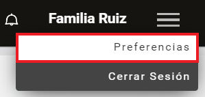 1. Accede a tu cuenta familiar. En el panel de control, haz clic en Menú en la esquina superior derecha de la pantalla y selecciona la opción Preferencias en el menú desplegable.