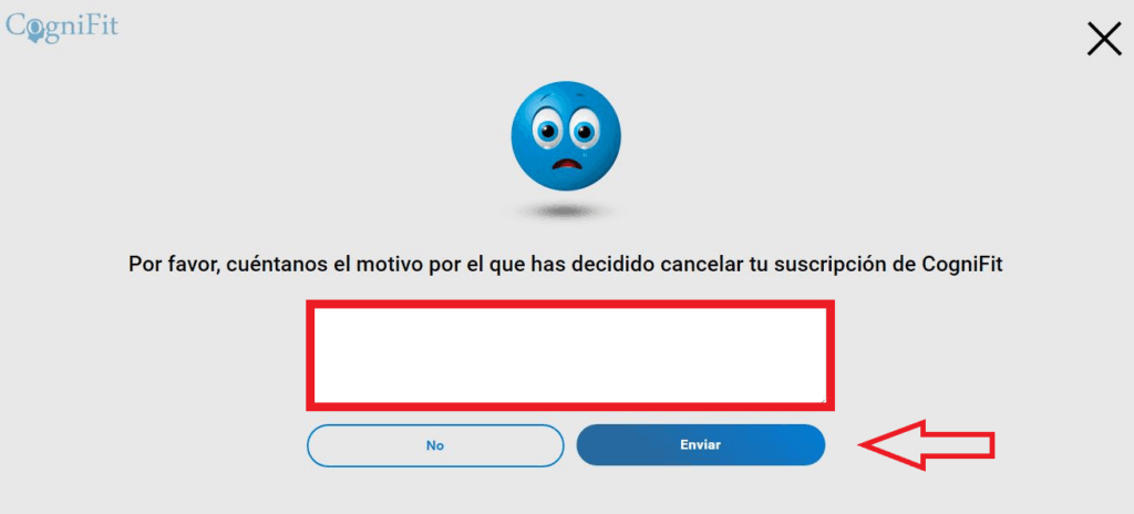 3. En la página que se abre a continuación, por favor, indícanos por qué has decidido darte de baja. Para confirmar la cancelación, haz clic en el botón «Enviar«.