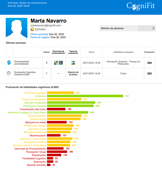 COGNIFIT PARA COLEGIOS PLATAFORMA PROFESIONAL PUNTUACIONES