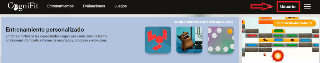 Después de acceder a tu cuenta de CogniFit, sigue los siguientes pasos para exportar los datos.