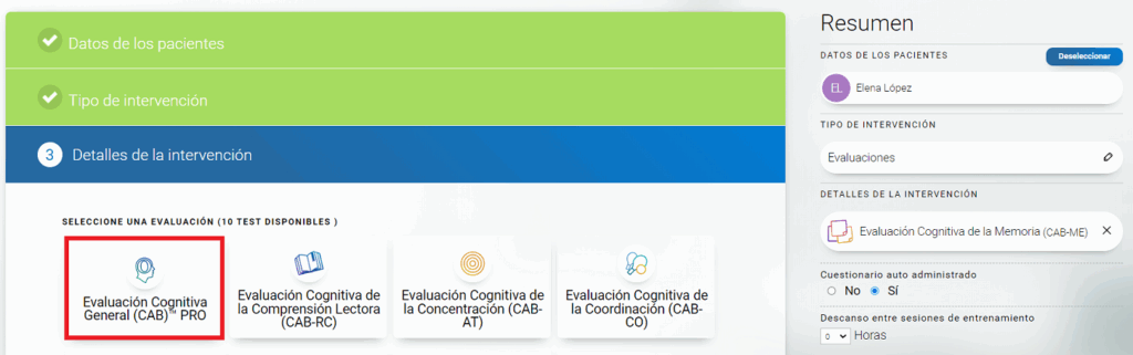 4.1.2 Selecciona una nueva evaluación para asignar al paciente