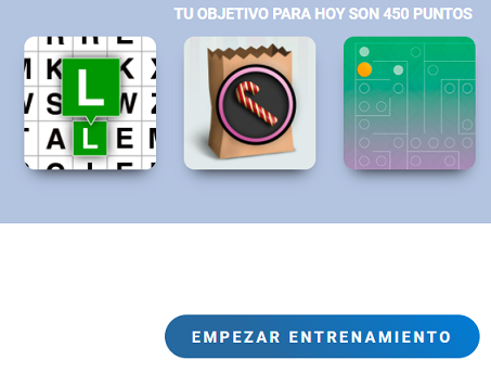 Cada sesión de entrenamiento está compuesta por 4 tareas. Las dos primeras tareas son ejercicios de entrenamiento y las dos últimas son tareas de evaluación que permitirán medir tu progreso. Por lo general, cuanto mejor se entrena, más probabilidades hay de obtener buenos resultados en las tareas de evaluación y aumentar la puntuación cognitiva.