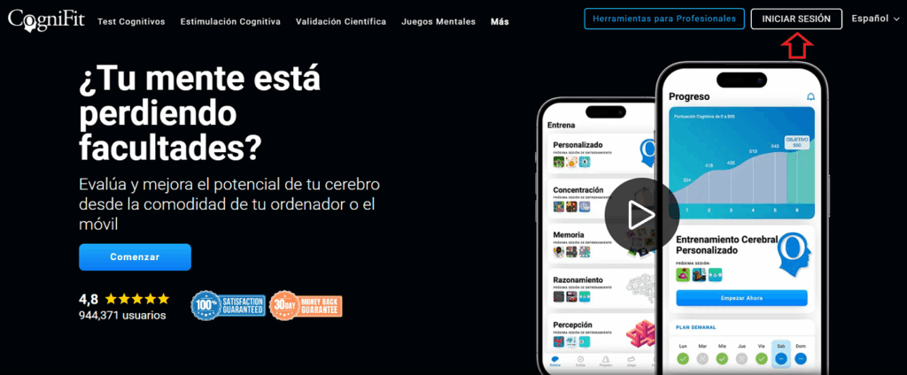 1.1 Haz clic en el botón Iniciar sesión en la página principal de CogniFit