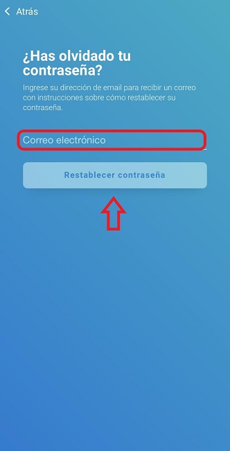 2.3 Añade tu dirección del correo electrónico registrada en CogniFit y pulsa en Restablecer contraseña