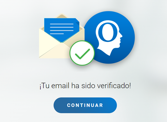 Verás una confirmación de que tu cuenta ha sido validada. Haz clic en el botón «Continuar».