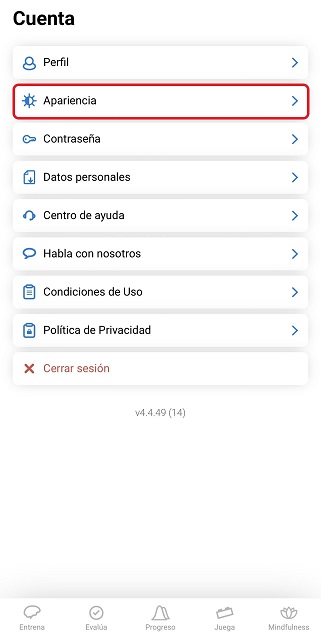 Esta opción sólo está disponible para los usuarios registrados en CogniFit. Por defecto, la app de CogniFit funciona en el modo que hayas configurado para tu dispositivo móvil (oscuro o claro).