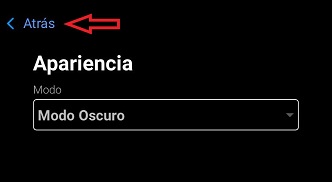 5. La aplicación cambiará al modo oscuro. Pulsa la opción «Atrás» para volver al menú principal.