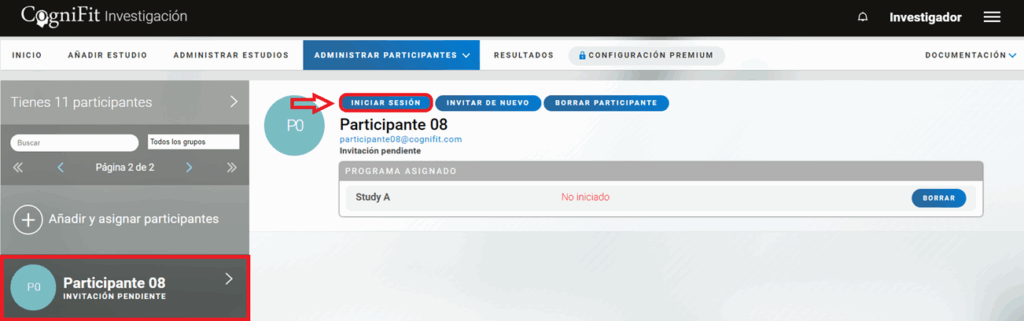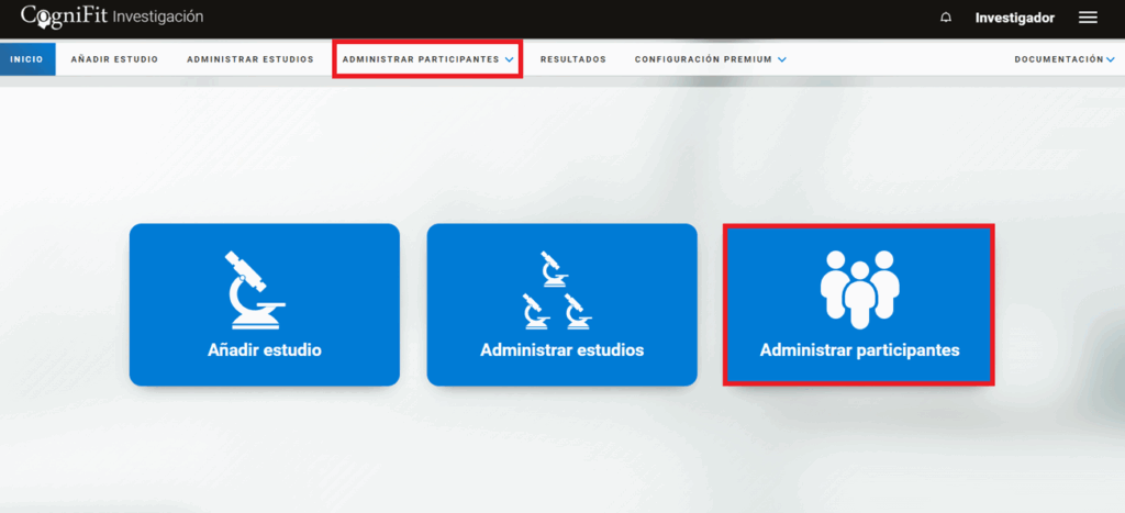 1.1 Accede a tu cuenta de investigador y ve a la página de Administración de Participantes