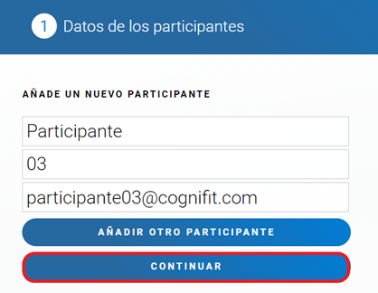Nota: Si el investigador desea añadir más de un participante, deberá introducir los datos del primer participante y hacer clic en el botón «Añadir otro participante». Este proceso puede repetirse hasta que el investigador haya añadido a todos los participantes. Cuando hayas terminado, haz clic en el botón «Continuar».