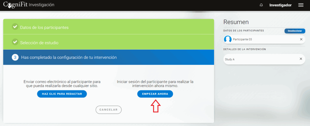 Para más información sobre cómo un investigador puede registrar por sí mismo a un nuevo participante, consulta la sección 2.5 de este artículo.