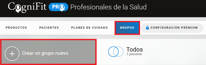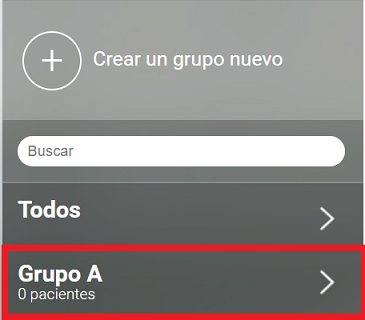 Nota: Para crear un grupo primero debes añadir pacientes a la plataforma. Cada paciente sólo puede estar en un grupo a la vez. Puedes ver cómo agregar pacientes a un grupo aquí.
