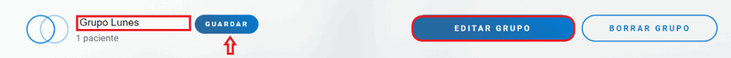 3.1 Para editar el nombre del grupo haz clic en el botón «Editar grupo«, introduce otro nombre y pulsa el botón «Guardar».