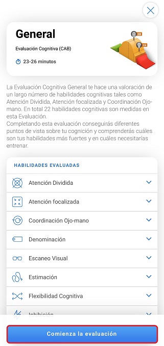 El paciente tiene que acceder a su cuenta a través de la aplicación de CogniFit y hacer clic en la intervención deseada.