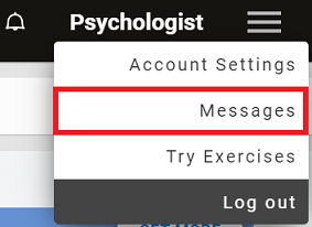 1.1  Go to your health care professional/teacher account and click on the menu in the upper right corner of the screen. Click on “Messages”.