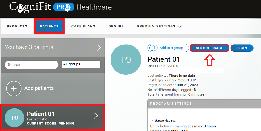 You can send messages to your patient/student in two ways: through the appropriate option in your account menu or from the user’s profile page. Let’s look at both methods in more detail.