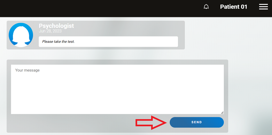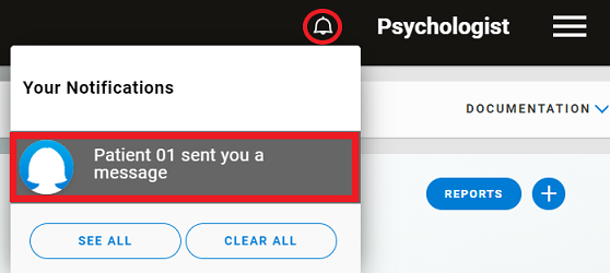 Your patient/student will see a message notification on their account notification bar. The user can reply to you by clicking on the selected message.