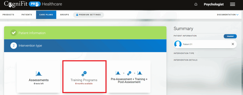 You can also purchase training licenses when you add patients to the platform. If there are no licenses available in the professional’s account when assigning a training to the patient, the platform will open a payment page and offer to purchase the necessary license (see article How to add patients, sections 4, 5).