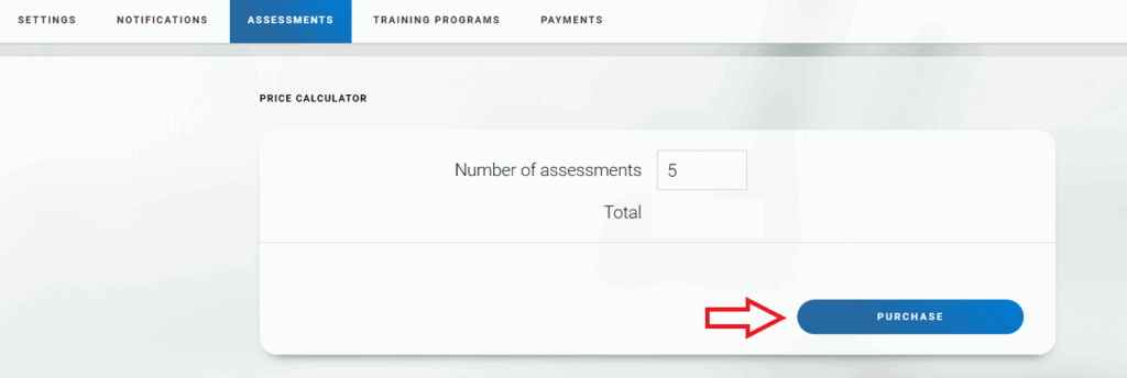 Then select the “Assessments” tab. On the page that opens, select the required number of licenses and click the “Purchase” button.