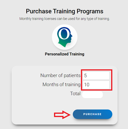 Enter the number of patients, the number of months of their training and click on the “Purchase” button.
