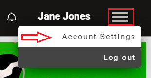 1.1 To get started, log into your account and click on the Menu icon in the top right corner and select from the drop-down menu Account Settings