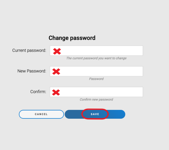 1.3 Enter your Current Password, your New Password and Confirm your new password. Click on Save when you’ve finished.