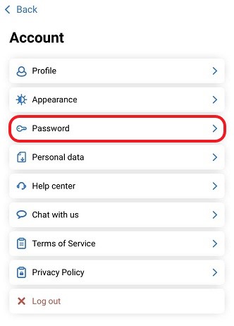 2.2 In the account menu click on Password
