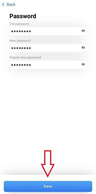 2.3 Enter the fields for your Old Password, your New Password and Repeat New Password and click on Save when you’ve finished.