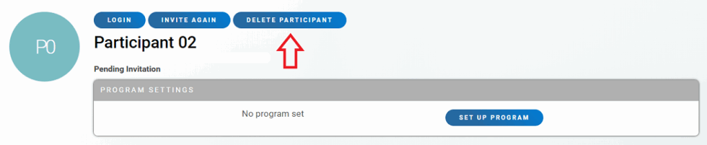 1.2 The participant’s profile page will open. To delete this user click on the “Delete participant” button.