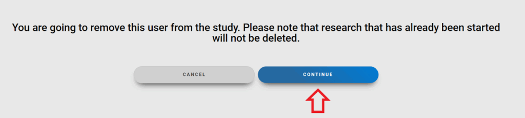 Once you have clicked the “Continue” button, the participant will be removed from your account for researchers.