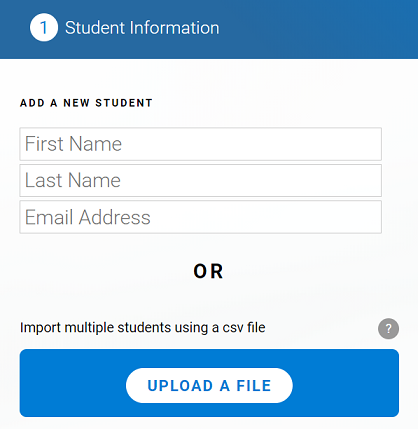 The educator will have multiple options for how to add students to the platform: They can import a list of students through a CSV file, or they may add one or multiple students manually.