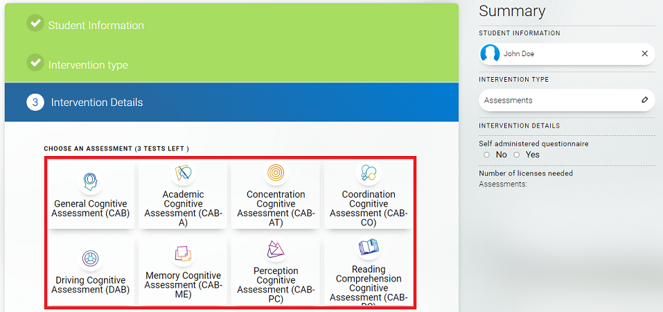 5.1  If you selected the assessment intervention.