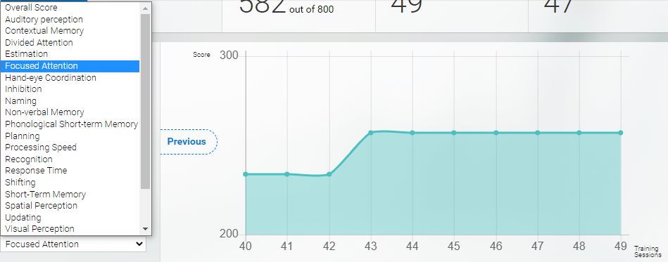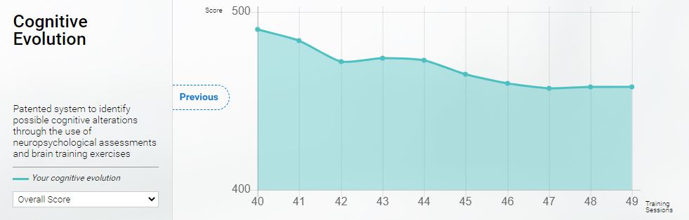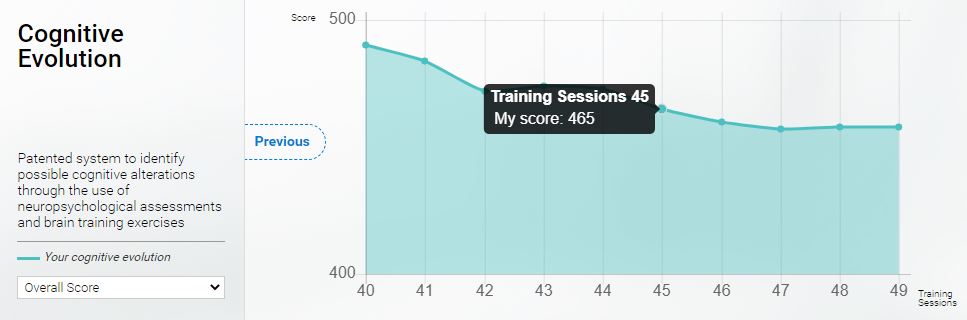 1.4 Hover over the dots to see the exact cognitive score for a training session.
