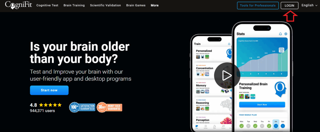 1.1 Click the Login button from the CogniFit homepage