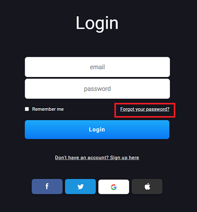 Please follow these steps to recover your password if you did not register using your Apple, Google, Facebook or Twitter account: