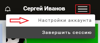 1. Откройте страницу настроек вашей учётной записи, кликнув на значок меню в правом верхнем углу экрана. В раскрывающемся меню выберите Настройки аккаунта.