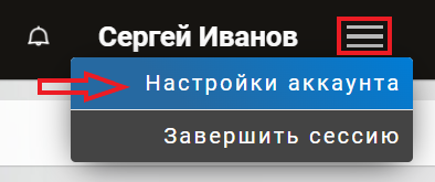 1.1 Нажмите на значок Меню в правом верхнем углу экрана. Затем выберите опцию Настройки аккаунта.