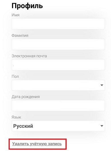 2.3 Внизу страницы профиля выберите опцию Удалить учётную запись.
