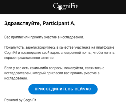 После того как исследователь добавит участников в свою учётную запись, участники получат по электронной почте приглашение зарегистрироваться в CogniFit. Обратите внимание, что исследователь также может активировать учётную запись участника от его имени.