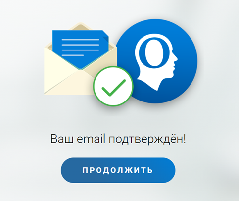 Вы увидите сообщение о том, что ваш аккаунт подтверждён. Нажмите на кнопку «Продолжить».