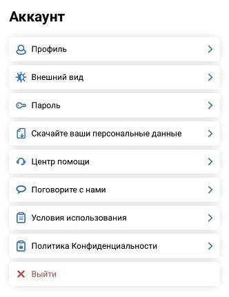 В настройках учётной записи вы можете отредактировать информацию профиля, поменять пароль, включить тёмный/светлый режим, выйти из системы и т.д.