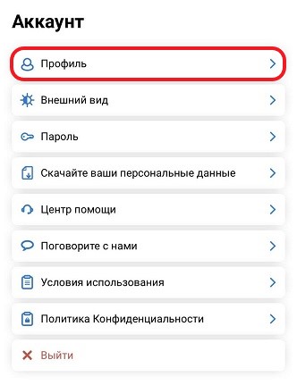 2.2 На открывшейся странице нажмите на Профиль.