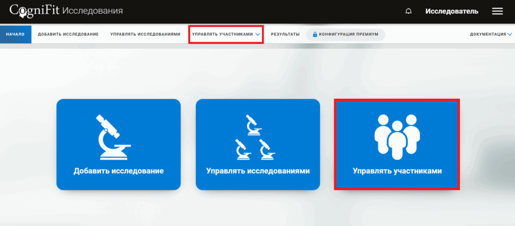 1.1 Войдите в свой аккаунт исследователя и перейдите на страницу управления участниками