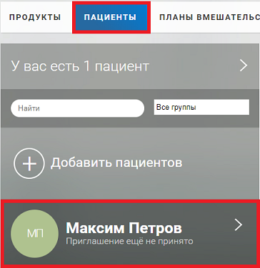 1.1. Нажмите на имя пациента в списке.