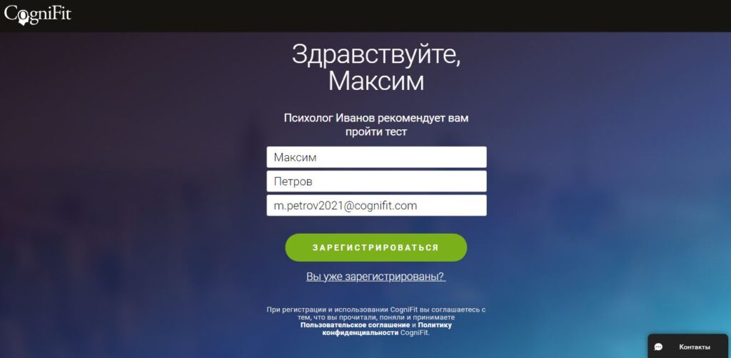 Пациенты также могут зарегистрироваться в CogniFit самостоятельно.