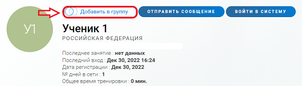 2. На открывшейся странице профиля ученика выберите опцию «Добавить в группу».