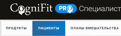 Войдите в свою учётную запись CogniFit и перейдите во вкладку Пациенты.
