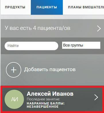 2. Выберите пациента, для которого вы хотите изменить назначенное вмешательство